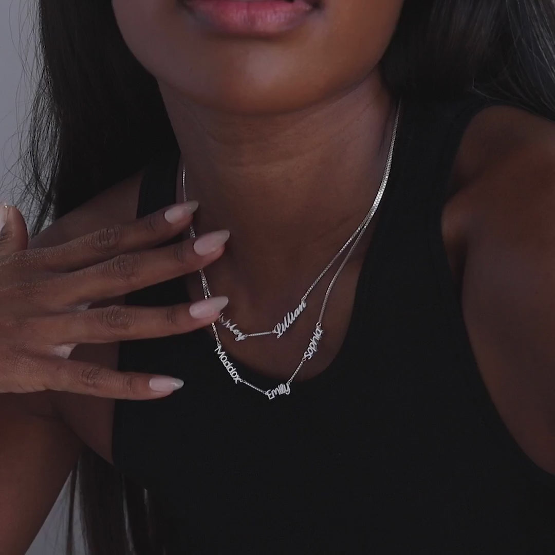 Inspired by the IT-girl, fashion icon of the 2000’s, we present to you the Carrie Multiple Name Necklace. Along with more options to add more names of those important to you, the charms sit on a sparkly box chain adding some extra oomph to your everyday outfit.